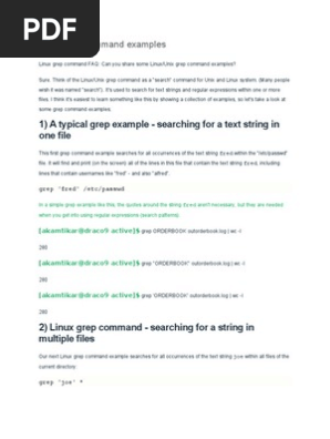 This means that if you pass grep a word to search for, it will print out every line in the file containing that word. The first part starts with grep grep allows you to find and print the results for whole words only. Grep for hub and you get chubby, hubby, hubris and rhubarb. The grep command searches one or more input files for lines containing a match to a specified pattern. For instance, to find any line that begins with a capital letter and ends with a period, use the following expression which escapes the ending period so that it represents a literal period instead. I am teaching myself commands and different ways to use grep. I'm using a scrabble words list i downloaded named sowpods.txt and i am trying to use grep to find all of the 7 letter words in the file that start and end with the same letter.the line i have now is giving me a backreference error so i tried using online guides but they were insanely confusing. Grep 'purchase' demo.txt next i need to find all filenames starting with purchase and. Beginners looking to experiment with linux can get started with friendlier linux distributions such as ubuntu, mint as you can see, grep has not only searched and matched the string linux but has also printed the lines in. If a match is found. I know how to find lines that have capital letters in them, but thats not what i want. Grep stands for global regular expression how to search for a string in a file using grep. You should tune it to meet your.