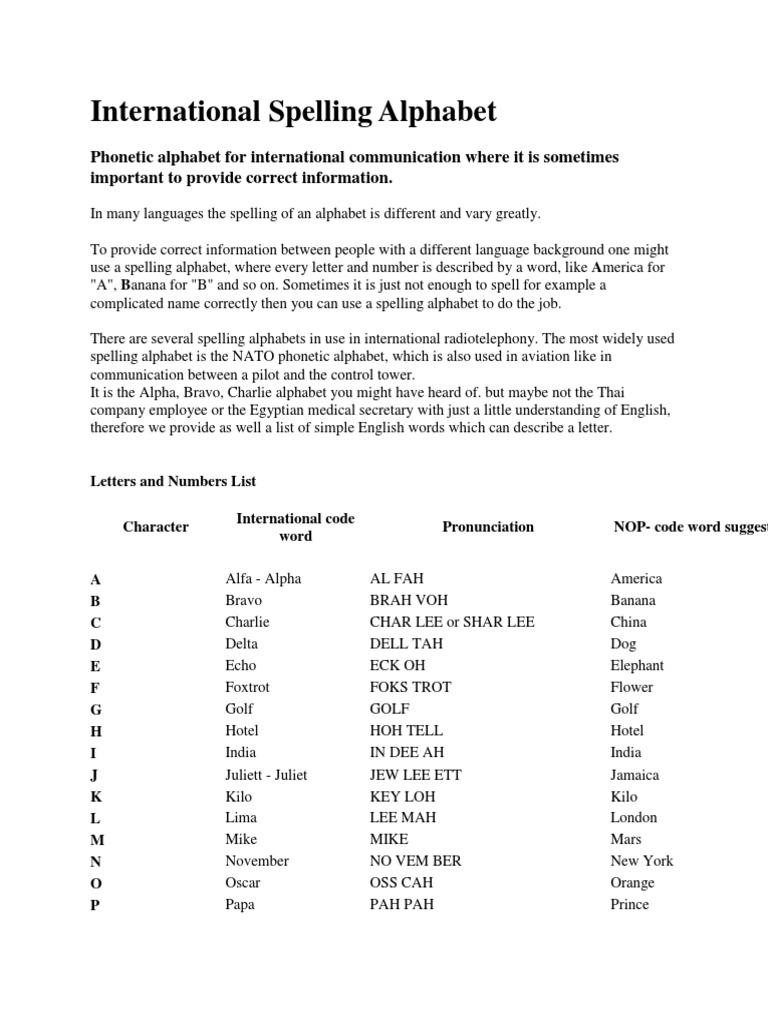 Words To Specify Letters Alpha Bravo / International Spelling Alphabet